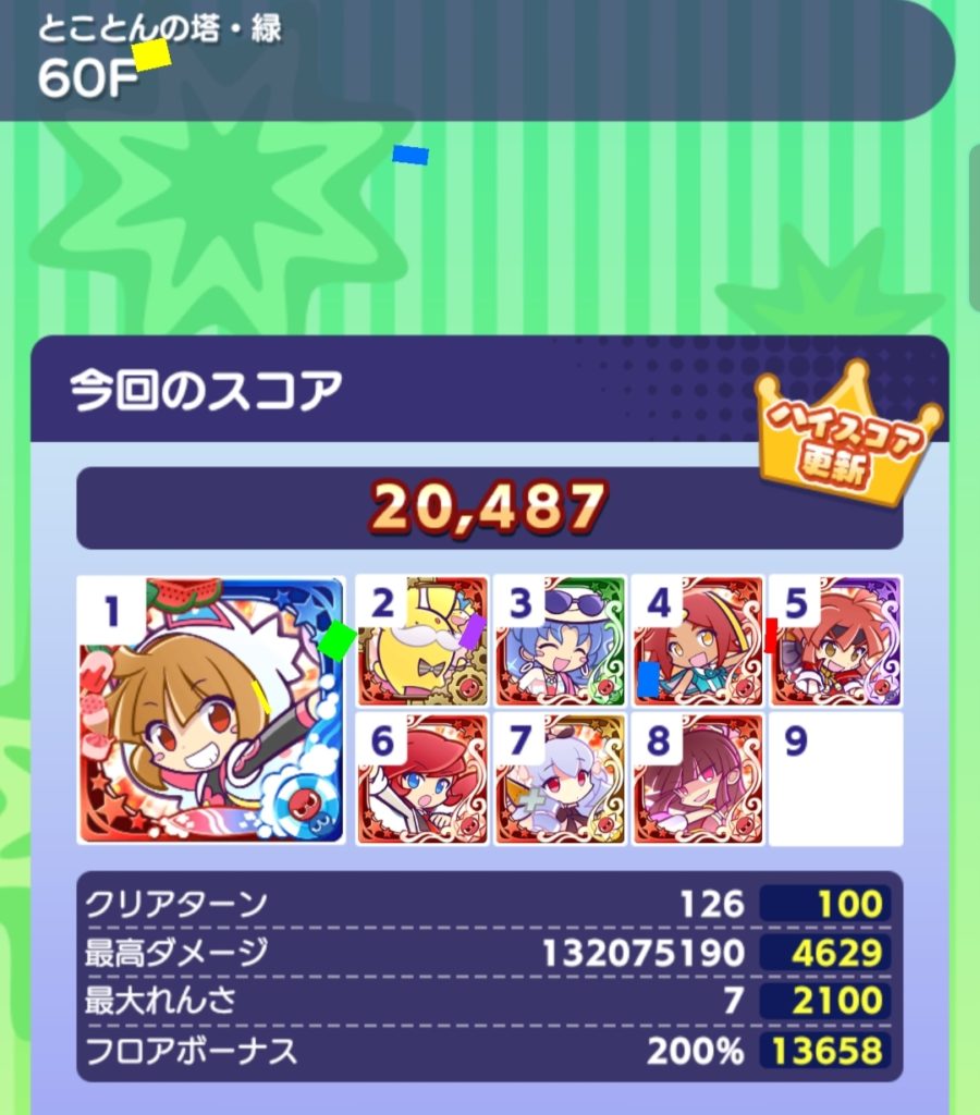 黄の塔はシンジ&初号機と手塚国光がいればヌルゲー(全色で一番カンタンだったかもしれない)ですが、現在は入手不可なコラボキャラが必要なのが難点ですね。