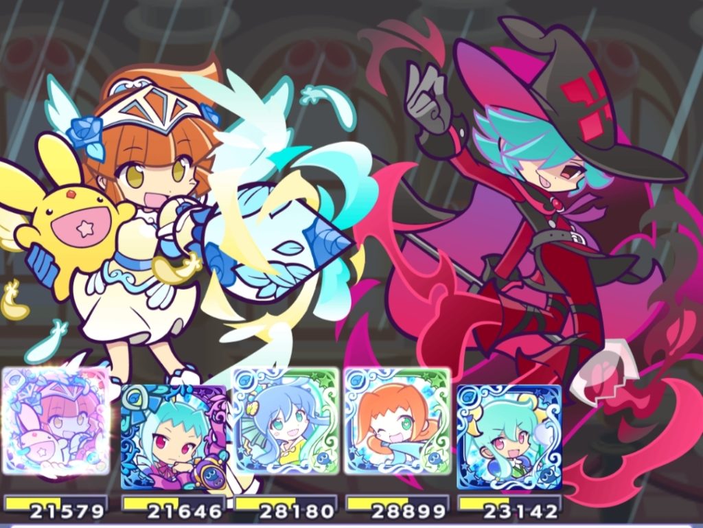 まず、第一ステージが固ぷよ2列生成の運ゲーで、固ぷよが消せても反射スキルが貯まらずに死ぬ、反射スキルが貯まっても固ぷよが消え切らずに死ぬ、固ぷよを消して反射スキルで強攻撃を凌げても、フィールドリセット持ちのキャラがいないと2週目以降で死ぬ。第2ステージは雅楽師によってネクスト変換を隠されてしまうので、第3ステージは最果ての料理人からスキル遅延されるので、スキル加速のリーダーがいない場合、ぷよの消し方やスキルの使用タイミングに気を付けないとスキルを再貯めできずに詰みやすいです。