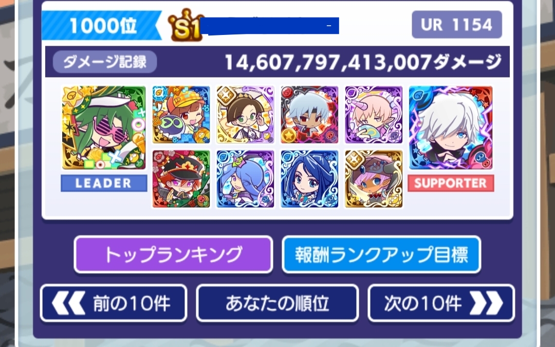 1000位のボーダーが14兆6000億以上なので、前回のデッキ編成のままだったら確実に1000位以下になっていたと思います💦